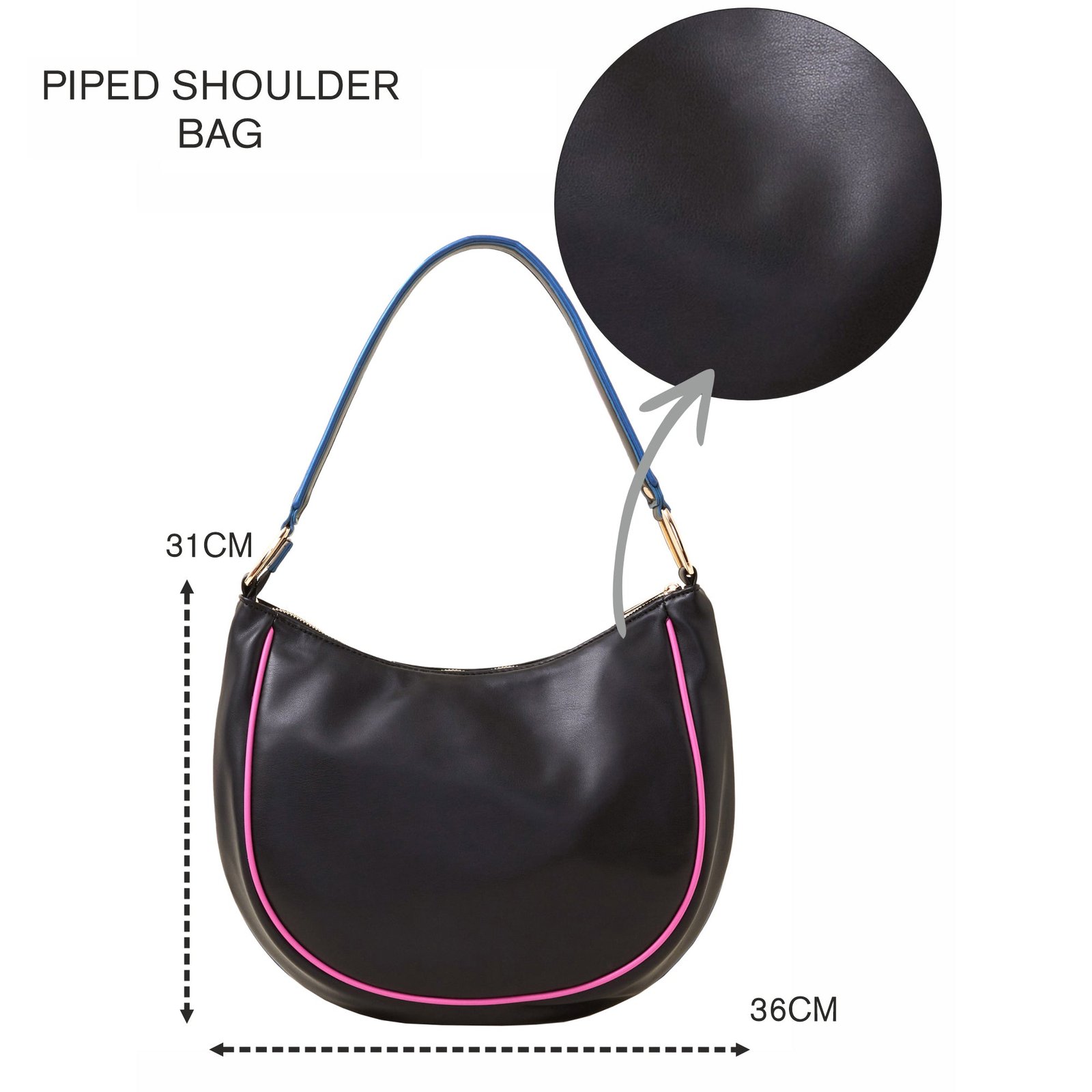 The spacious interior comfortably fits essentials such as your phone, wallet, keys, and small accessories. The sturdy shoulder strap ensures hands-free convenience, while the lightweight design makes it easy to carry all day. This black piped shoulder bag is a versatile and timeless accessory that complements any wardrobe effortlessly.