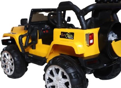 Make playtime more exciting with the Kids Battery Operated Dual-Color Jeep, designed with a bold two-tone look and a strong, durable frame. Powered by a reliable 12V rechargeable battery, this electric ride-on jeep offers a smooth, safe, and adventurous driving experience for young kids.