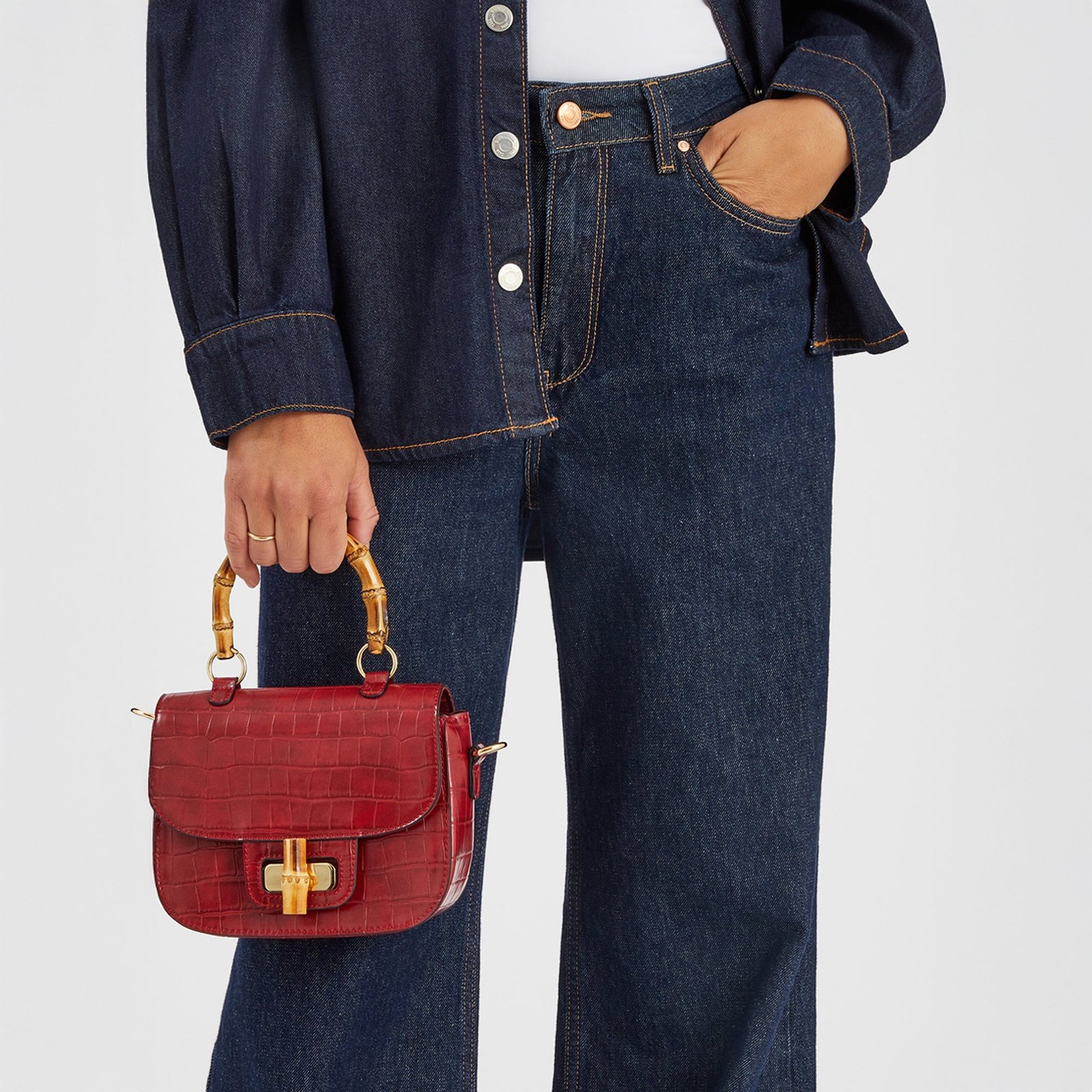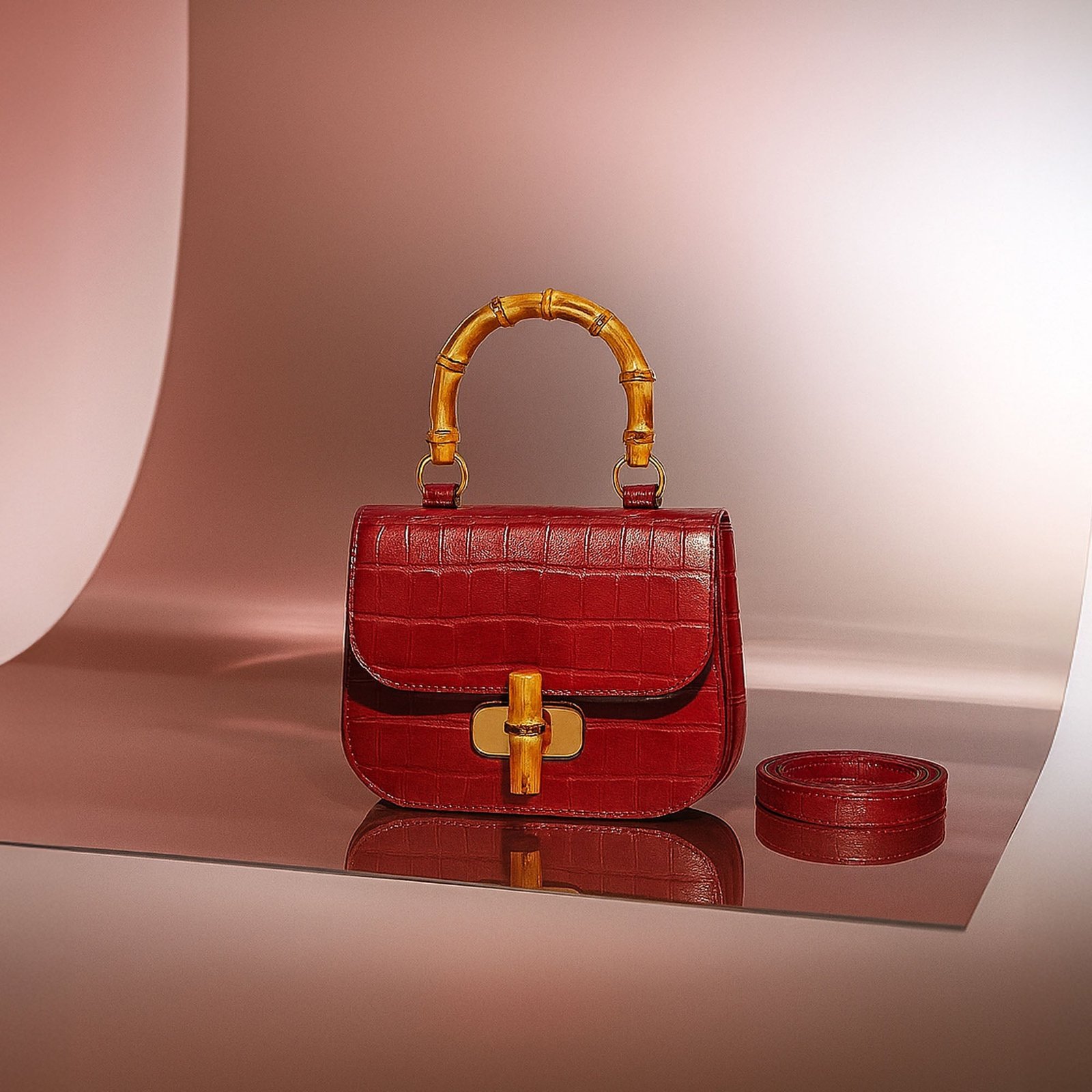 Perfect for brunches, shopping, casual outings, or evening events, this red bamboo handbag is a versatile addition to any wardrobe.